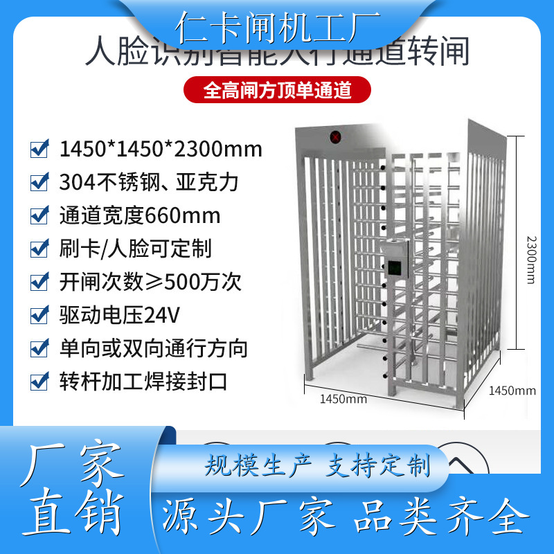 仁卡牌的道闸三辊闸健身房图书馆门禁通道闸机工地门禁人脸系统厂家产品:估价:780.00,规格:标准三辊闸,产品系列编号:标准三辊闸 发布日期:2025-5-5